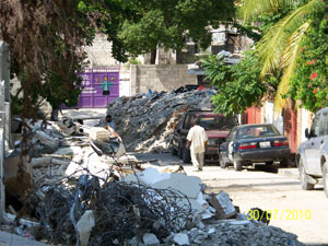 I have been to Haiti many times, but was unprepared for what I saw. The airport procedures were chaotic and CRS security protocol required us to travel in a convoy of 2 jeeps at all times, while avoiding certain hours and streets. We were shocked at the destruction all around us and we did not even see the worst hit areas. The airport area has a refugee camp for over 20,000 and near the Timkatec schools, another for 50,000. On arrival at the hotel we saw that half of it was rubble. There are falling buildings and piles of rubble on every street, many of which are still impassible.