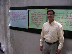 Children at Timkatec 1 during a visit by Patrick O'Shea.Enrollment of 200 students is complete for Timkatec 2 and that they are having great success with the addition of shoe repair and masonry to the other trades already offered. The core effort at Timkatec 1, the rescue of abandoned street children, continues and currently, over 100 children are enrolled in the primary education program, with half of them residents. Father has brought in an assistant, a Haitian Sister who is a great help in the daily operation of the Timkatec program. This leaves him more time for his street rescues, future planning and fund raising efforts, as we personally saw with the recent visit to Sanford resulting in our raising 25% of the annual budget.